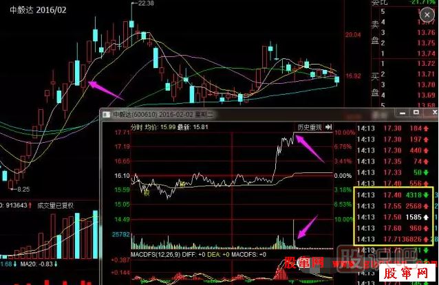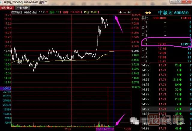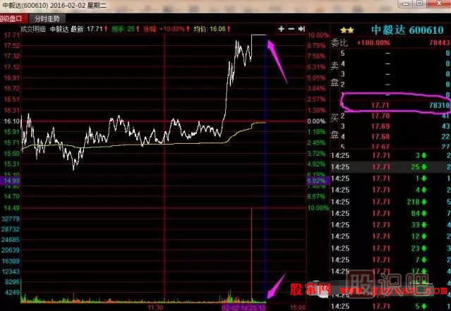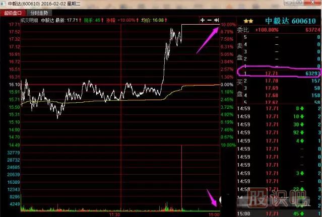 下面以中毅達(dá)2016年2月2日的盤口信息為例,來(lái)一起看看趙老哥是怎么封板、加單、出貨的。
