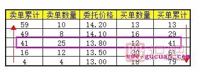 比如上圖:從13.00-14.2的價(jià)格委托的買單和賣單,要達(dá)成在某一個(gè)價(jià)格形成的成交量最大,從圖上不難看出在13.80的價(jià)格能達(dá)成的成交量是最大的,41手!而其他的位置都小于41手,比如在13.00的價(jià)格最多能成交4手,在14.10的價(jià)格最多能成交29手。