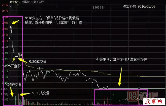 隨手拿昨天的勝宏科技來(lái)說(shuō)說(shuō)集合競(jìng)價(jià)其中一種假單的情況,這種情況一般是針對(duì)活躍股出貨的時(shí)候或者其他有出貨需求的股票而言的。當(dāng)然了,集合競(jìng)價(jià)未必都是假單,其他情況還有很多,比如清洗浮籌或者故意打壓去拿更低價(jià)的籌碼等等,就不一一列舉了,大家自己根據(jù)實(shí)際情況判斷吧。