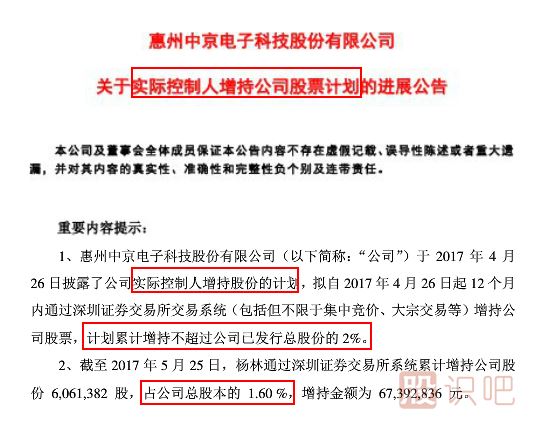 【例1】中京電子(002579):17年5月25日實控人增持606萬股