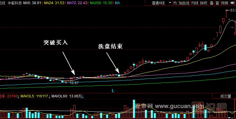 中船股份(600072)該股是黑馬股之一。在5.30暴跌過后,其均線系統(tǒng)形成了一個(gè)粘合在一起,然后發(fā)散向上的多頭排列。均線的推動(dòng)變成了強(qiáng)烈的買入信號。股價(jià)在5日線和72日線附近橫盤在一起向上,回抽生命線之后就啟動(dòng)了,這個(gè)時(shí)候就是賺錢機(jī)會,大膽買入就可以獲得利潤。股價(jià)從18元附近快速拉到28元,開始構(gòu)筑一個(gè)平臺,經(jīng)過一段時(shí)間的橫盤再次發(fā)力向上,突破30元平臺,之后連續(xù)狂飆,迅速翻倍到達(dá)63.97元。從12.87元上漲到63.97元只用了不到三個(gè)月的時(shí)間,這種快速漲4倍的股票并不多。我們要研究那些多數(shù)人沒有看到,但是主力又非常有資金實(shí)力又有魄力的,這樣的股票通常會成為超級黑馬股。牛市的大盤狀態(tài)是主力炮制翻倍黑馬的重要環(huán)境。一般股票上漲太快,很多人不敢買入。當(dāng)人們認(rèn)為一定會到100元以上的時(shí)候,該股卻出現(xiàn)瘋狂地出貨。該買的時(shí)候害怕再跌就錯(cuò)過了買入機(jī)會,上漲的時(shí)候就盲目信心膨脹,因?yàn)樨澙酚皱e(cuò)過了賣出的機(jī)會。