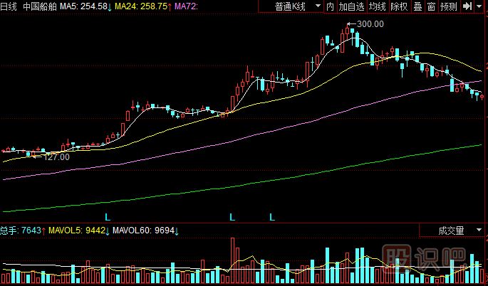 中國船舶(600150)該股是非常經(jīng)典的強勢高價股。在股價超過100元的股票中表現(xiàn)最為突出,該股的趨勢非常明朗,清晰的上升通道,沿著5日線和24日生命線不斷振蕩上漲,不斷創(chuàng)出歷史新高。在刷新歷史新高的過程當(dāng)中都是平均量,成交量不是非常突出,也沒有特別的一堆量,這個就是籌碼鎖定非常好,大部分籌碼都在主力的手上才會出現(xiàn)這樣的成交量不放大的情況下不斷上漲的走勢圖。股票就是這樣,暴漲之后就是暴跌,資金推動型的股票規(guī)律沒有因為市場的擴大而改變。在單邊下跌、沒有做空機制的中國股票市場中,最好的回避風(fēng)險的方法就是空倉。對于超級牛市當(dāng)中的牛股,最好的操作策略就是持有。一直到跌破生命線或在高位出現(xiàn)明確的見頂信號之后才采取賣出的行動。