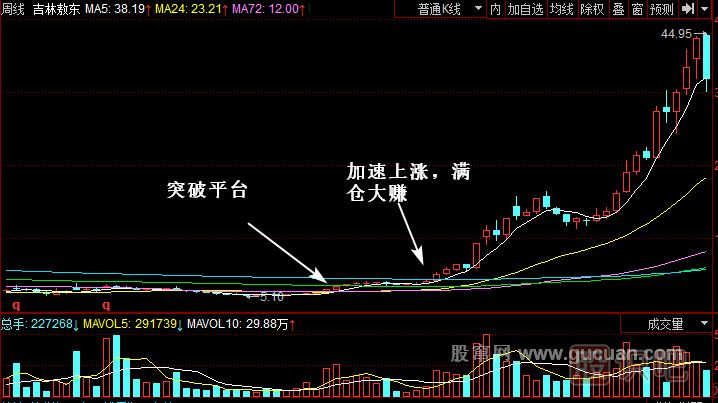 (1)股票剛剛突破平臺時,第一次買入,是上漲的開始。