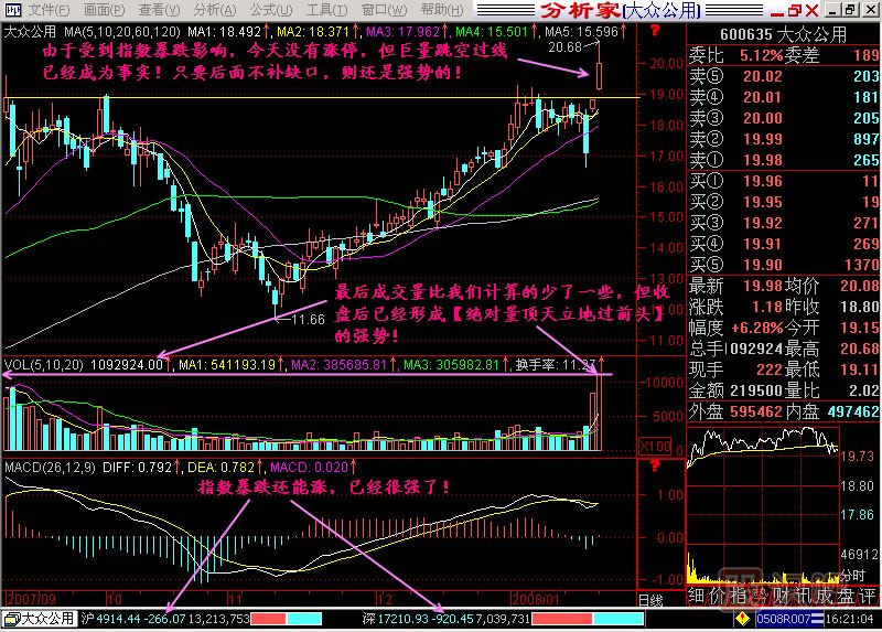(2)按照這種成交量柱體快速增長的速度計算,當日的成交量柱體可能是最近6個月或12個月內(nèi)最高的一根。