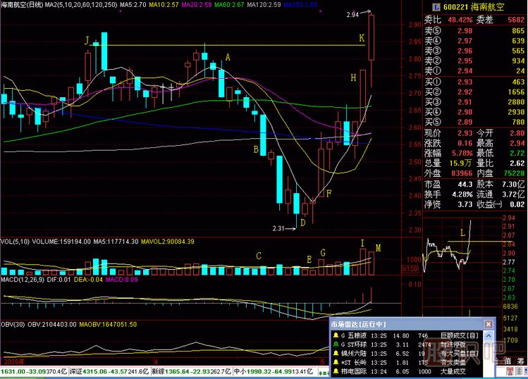 挖坑掏坑圖267-1600221海南航空從(圖267-1)的J點(diǎn)橫向盤(pán)整到A點(diǎn),運(yùn)行在2+3區(qū)間,60日、120日和250日平均線有形成年托的趨勢(shì),這種走勢(shì)在目...