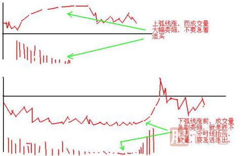 條件1、上弧線漲,漲時(shí)成交量委縮要小心跌。2、下弧線漲,成交量委縮時(shí)要小心漲。