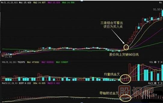 如果在均線和MACD指標(biāo)金叉的同時(shí),均量線也完成了金叉,則說明隨著股價(jià)上升速度加快。