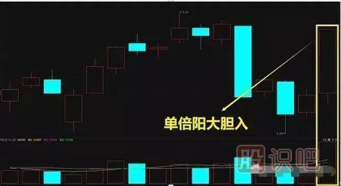 單倍陽:今天的量柱比昨天的量柱高一倍左右,切陽線實體高于前日;