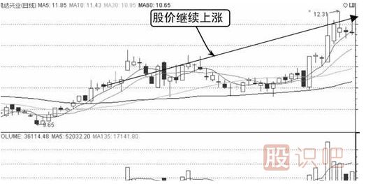 由圖中可知,該股在跳空上漲后放量,后市短期內(nèi)出現(xiàn)下跌,原來