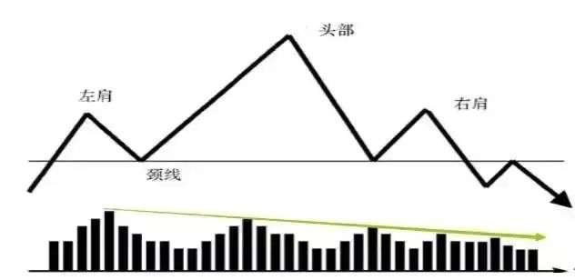 頭肩頂是在高漲走勢貼近序幕時(shí)的看跌形狀,圖型以左肩、頭頂部、右肩及頸線組成。在頭肩頂產(chǎn)生流程中,左肩的交易量較大,頭頂部的交易量略小些,右肩的交易量很小,交易量呈下降狀況。