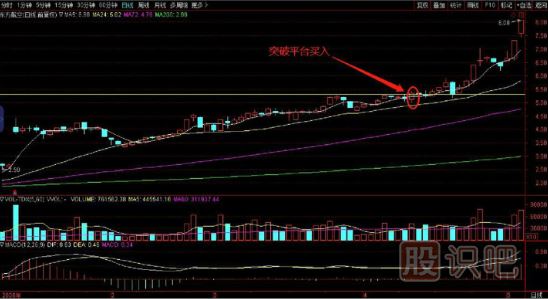 股價在上漲過程中往往會停下來歇歇,消化獲利盤,以減輕上行的壓力,這時股價往往會出現沖高回落或者進行上下震蕩的整理平臺,在股價放量突破前高或者整理平臺時就是短線買點,這時股價會開始新一輪的上漲。
