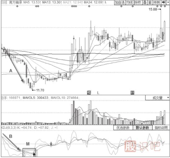 股票技術(shù)圖形分析給你講股價(jià)下跌趨勢(shì)中的KDJ底部信號(hào)