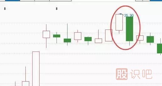 該形態(tài)出現在上漲趨勢中,由兩根K線組成。第一根K線是實體較小的陽線,第二根K線是實體較長的陰線,且這根陰線的實體將前陽陰的實體從上到下全部吞沒。