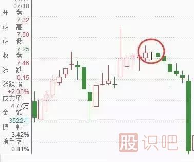 黃昏星形態(tài)是較為強烈的看跌信號,它表明下跌動能在經過十字線的搏斗之后已經戰(zhàn)勝了上漲動能,后市看跌。