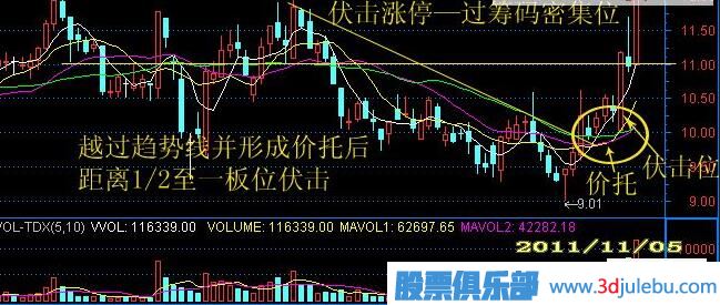 方法是在把握目標(biāo)出現(xiàn)位置的前提下提前一天進(jìn)入伏擊位置等待漲停出現(xiàn)。