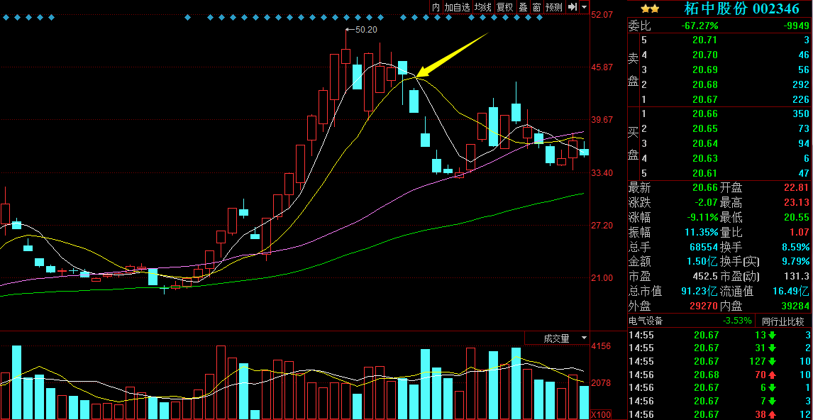 龍頭個股在高位震蕩后,當(dāng)均線系統(tǒng)形成死叉,股價由震蕩或多頭趨勢轉(zhuǎn)成空頭趨勢,當(dāng)股價跌破中線趨勢線20日均價線時,相當(dāng)于給龍頭股判了“死刑”,基本上就宣告行情結(jié)束了,剩下的將是漫長的還債行情,雖然偶爾會有漲短線實戰(zhàn)看盤技巧給妳聊龍頭股短期見頂后常見走勢停表現(xiàn)比較亮眼,但也很難泛起波瀾。