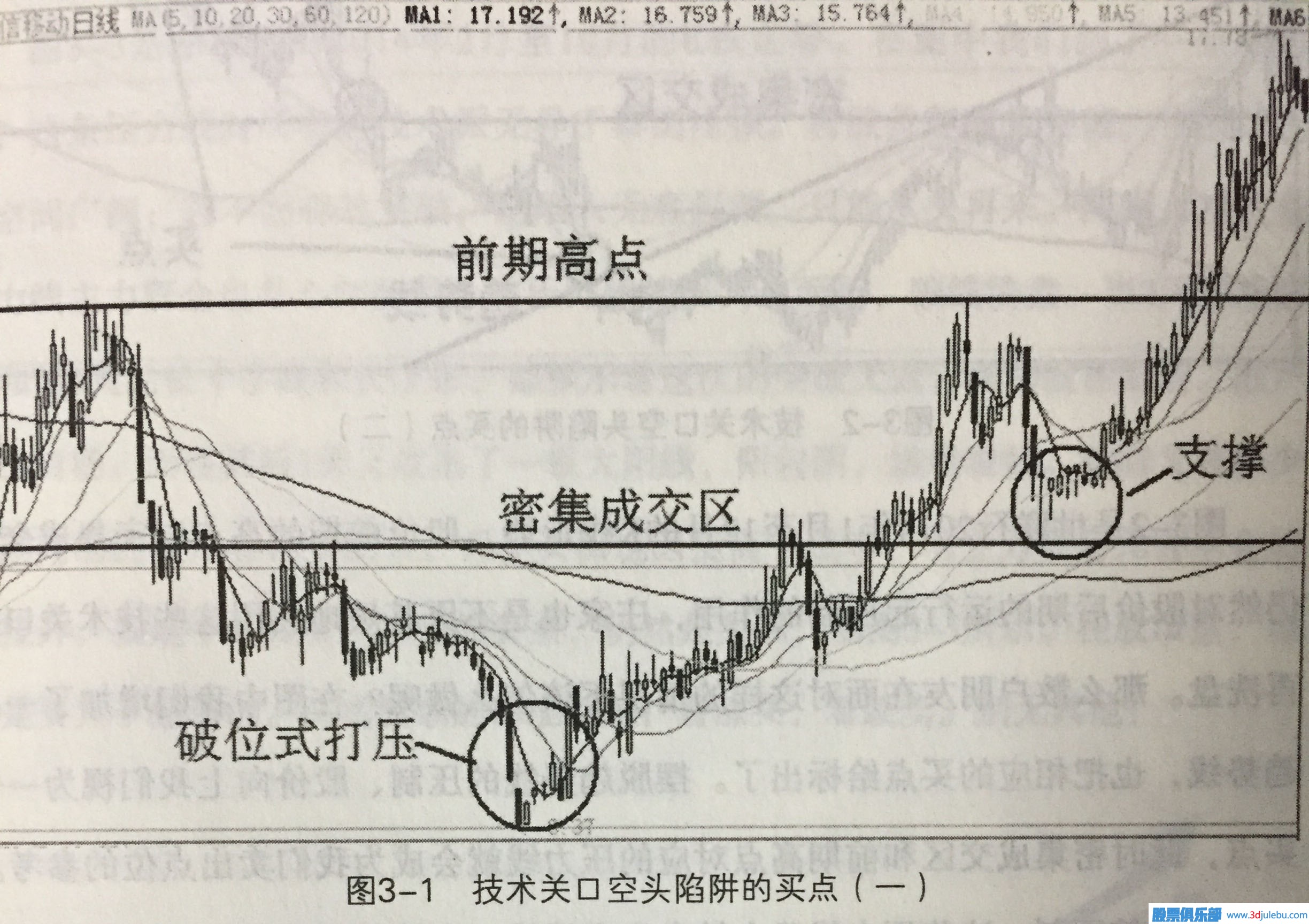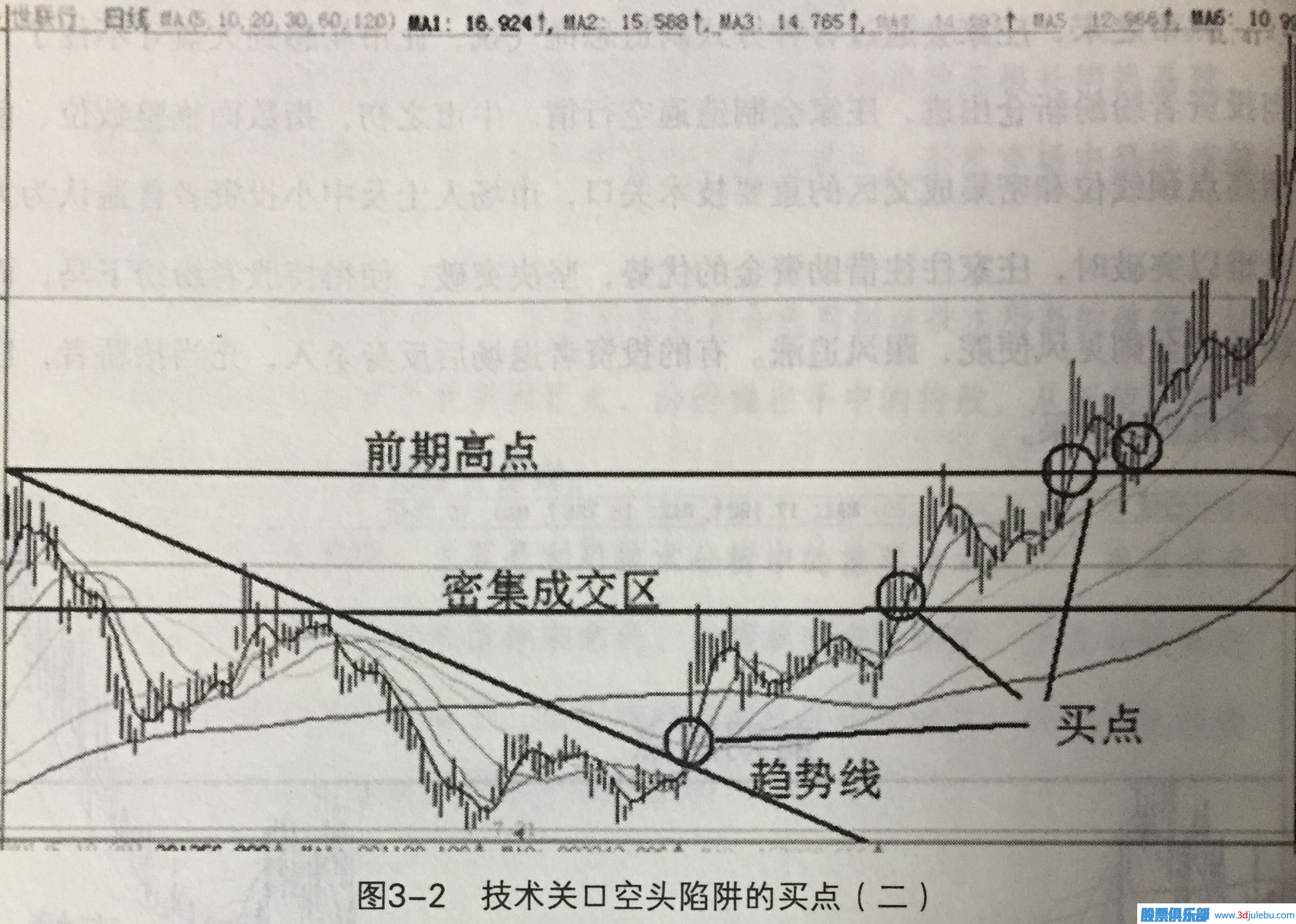圖3-1是恒信移動2014年1月至9月的K線走勢。在圖中我們可以看到莊家利用技術關口進行洗盤而布下的空頭陷阱。首先,莊家利用一連串的大陰線破位式打壓,手法凌厲而兇狠使小散戶們短期出現(xiàn)巨大的損失而不得不割肉離場。這樣做同時也為莊家的低位吸籌打開了空間。其次,在隨后的股價運行中,莊家利用密集成怎樣跟莊炒股閑侃莊家制造逼空行情的買賣點分析交區(qū)、前期高點等重要的技術關口進行深度洗盤制造空頭陷研。莊家的每次操作都是以大陰K線深度擊穿均線為特征見。而密集成交區(qū)、前期高點都是非常重要的技術關口, 莊家利用這些技術關口的, 對散戶的殺傷力可以想布置空頭陷阱,洗盤也就不作為奇了。