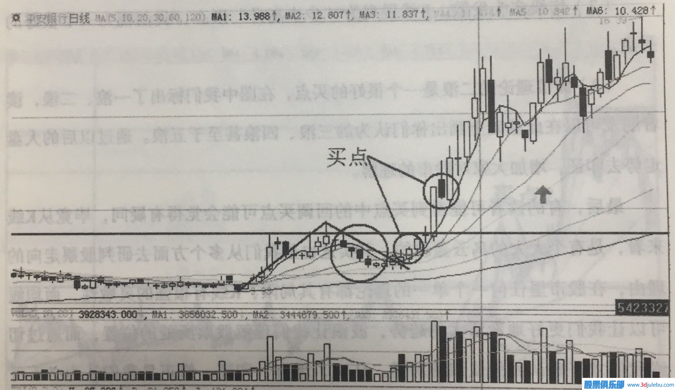 (2)均線(xiàn)多頭發(fā)散,K線(xiàn)展現(xiàn)為“步高升”形態(tài), 我們視為一個(gè)很好的買(mǎi)點(diǎn)。