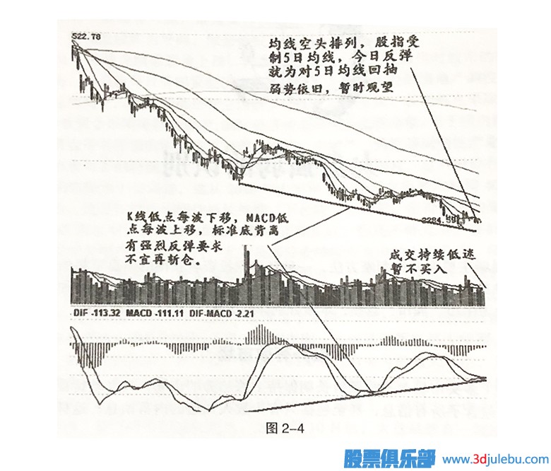 弱勢市場(空頭市場)是指股價長期呈現(xiàn)下跌趨勢的市場,其變動特征為一連串的大跌小漲。如果價格、交易量、短期利率等市場交易信息已充分反映在股票價格中,這樣的市場就被稱為弱勢有效市場。如圖2-4: