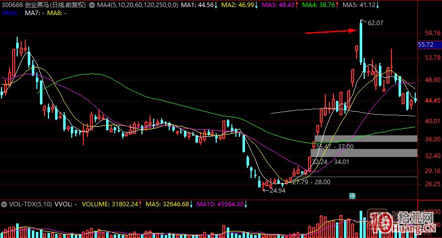 注意這個(gè)創(chuàng)業(yè)黑馬是不一樣的,雖然它也是換手的板,但是炸板了。不一樣的點(diǎn)在哪兒,就是這個(gè)票前一天并不是單純的加速票,而是在前一天的尾盤就已經(jīng)產(chǎn)生了分歧。因?yàn)檫@個(gè)分歧,所以次日開(kāi)的并不高,這和加速加不動(dòng)了,