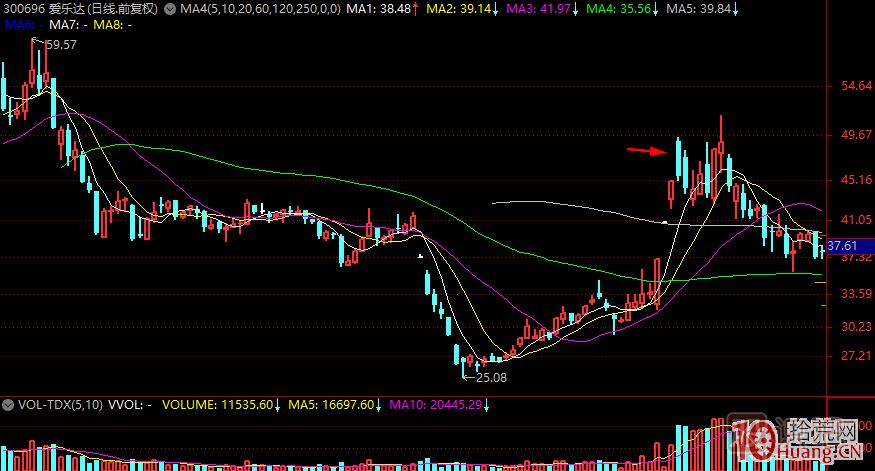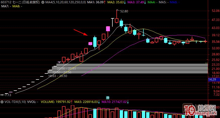 這個(gè)應(yīng)該也不難理解,就是加速次日,或者當(dāng)日首次加速,在加速的情況下漲停換手,然后爆量回封爛板。注意,這個(gè)一般發(fā)生在4板最為常見(jiàn),因?yàn)?板是一個(gè)獲利盤堆積需要集中釋放的位置。