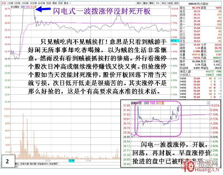近期打擊操縱股價莊家牛散的處罰報告不斷。但當(dāng)下大部分交易日市場稍微穩(wěn)定兩市漲停個股明顯增多熱鬧非凡。而且還出現(xiàn)一個特別的現(xiàn)象,就是股價盤中以閃電方式一波撥到漲停的現(xiàn)象非常明顯。這引得不少短線操作者蠢蠢欲動都想跟著干它一票。漲停是個股每日上漲波動最極端表現(xiàn)之一,連續(xù)漲停則是炒股利潤來源最快的途徑。