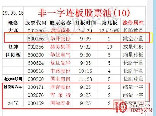 當天的2或3連板并且是題材龍頭的票:華升股份大麻的2連板,厚普股份和雪萊特新能源車的2板,油氣國際實業(yè)的2板。