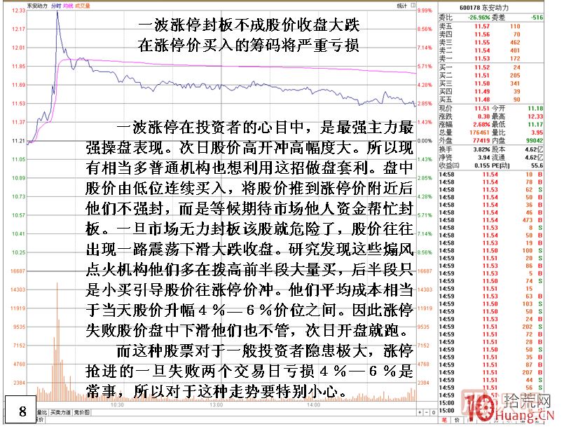 所搶的個(gè)股不能封漲停有兩大風(fēng)險(xiǎn):第一,當(dāng)天股價(jià)因不能封漲停出現(xiàn)明顯回落,當(dāng)天就被套出現(xiàn)損失。第二,不能封漲停品種除了當(dāng)天回落,大部分次日會(huì)出現(xiàn)低開(kāi)低走,損失進(jìn)一步擴(kuò)大。