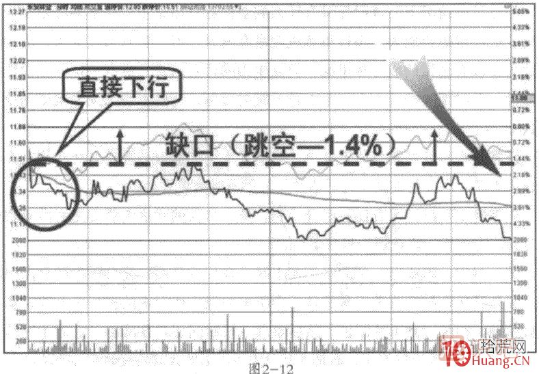 注意:在有跳空缺口的開盤中,開盤后有沒有立刻回補缺口的動作以及該動作的力度大小,是決定全天走勢方向是否明朗的重要標(biāo)志。
