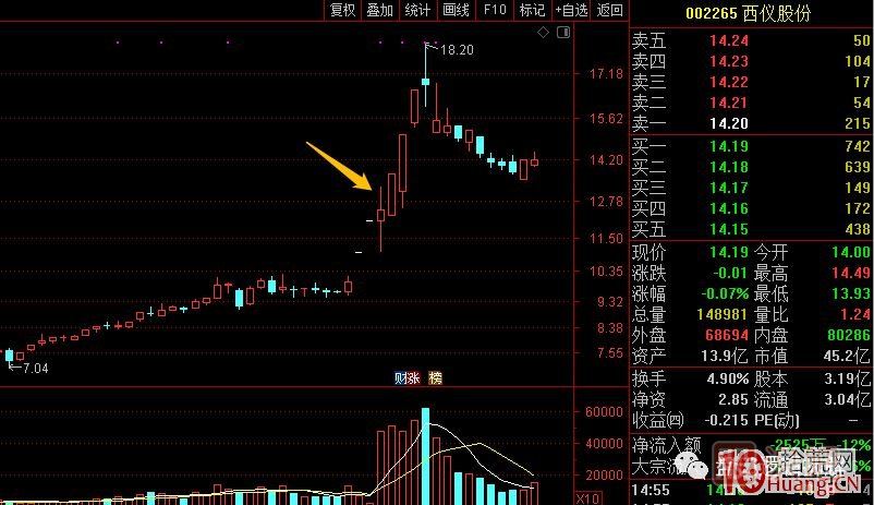 常識里,一字板里經(jīng)常出現(xiàn)板塊空間高度板,市場地位要高于換手板。軍工利好后,西儀股份兩個一字板,帶動板塊上漲,被默認(rèn)為題材龍頭了。