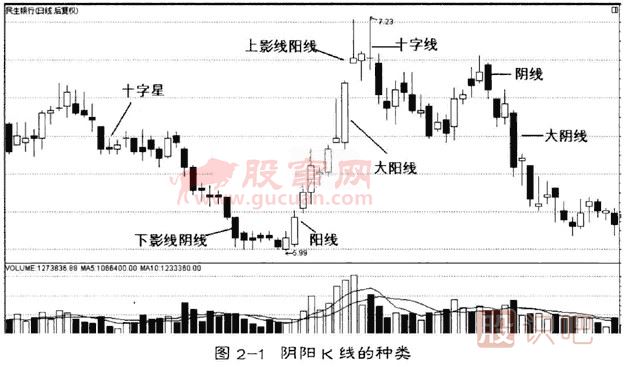單一K線分陽K線和陰K線。陽K線即收盤價高于開盤價的K線;陰K線即收盤價低于開盤價的K線。(如圖2-1)