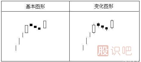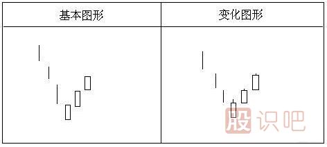 (2)在此陰線之后,出現(xiàn)一群實體短小的陽線。這群陰陽線最好顏色相反。