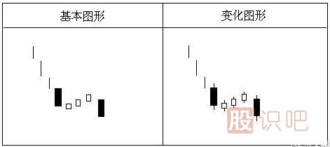 下降三法是持續(xù)型組合形態(tài),該組合的出現(xiàn),意味著股價將沿著原有的下降趨勢繼續(xù)下降。其圖形如下。