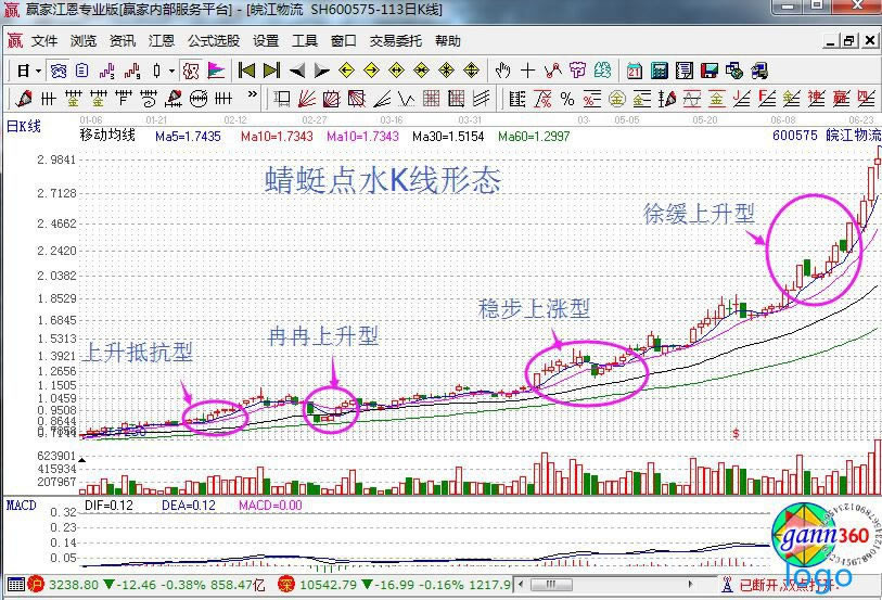 如圖2所示,金發(fā)科技(600143)在30日均線的壓制下大幅下跌,該股在9元一帶形成兩陽夾一陰K線組合。兩陽夾一陰K線組合是在股價剛突破30日均線不久后出現(xiàn),明顯是多方拉升股價的信號,投資者可以積極跟進。