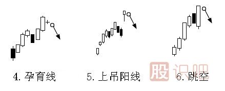 所謂跳空即兩條陰陽(yáng)線之間不互相接觸,中間有空格的意思。連續(xù)出現(xiàn)三根跳空陽(yáng)線后,賣壓必現(xiàn),一般投資人在第二根跳空陽(yáng)線出現(xiàn)后,即應(yīng)先行獲利了結(jié),以防回檔慘遭套牢。
