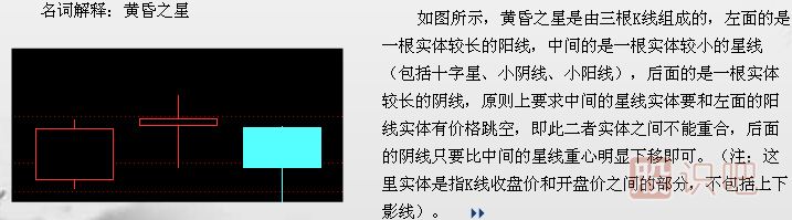 黃昏之星黃昏之星黃昏之星形態(tài)與特征描述黃昏之星又稱“暮星”,是一種類似早晨之星的K線組合形態(tài)。是后者的翻轉(zhuǎn)形式。黃...