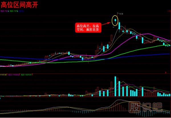 高位區(qū)間高開(kāi)是指,股價(jià)經(jīng)過(guò)一波上漲后,在高位大幅高開(kāi),表面上給散戶以仍然有暴利可圖的的假象,實(shí)則是莊家為出貨而拉高出貨空間,同時(shí)吸引接貨盤(pán)的涌入。