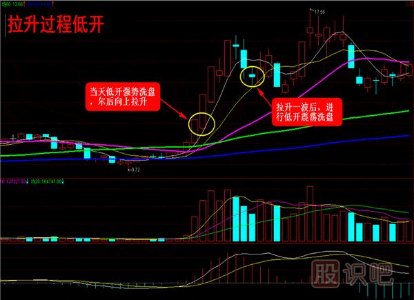拉升過(guò)程的低開(kāi),往往意味著莊家通過(guò)低開(kāi)再拉升,或者低開(kāi)向下震蕩的方式進(jìn)行強(qiáng)勢(shì)洗盤(pán),以洗出獲利盤(pán),減輕再次拉升的拋壓。