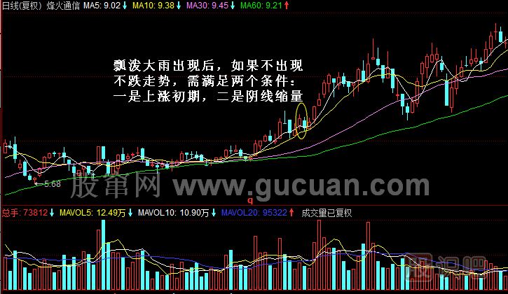 4.瓢潑大雨K線組合出現(xiàn)后,股價不跌反漲的情況極少,且必須滿足相關條件。