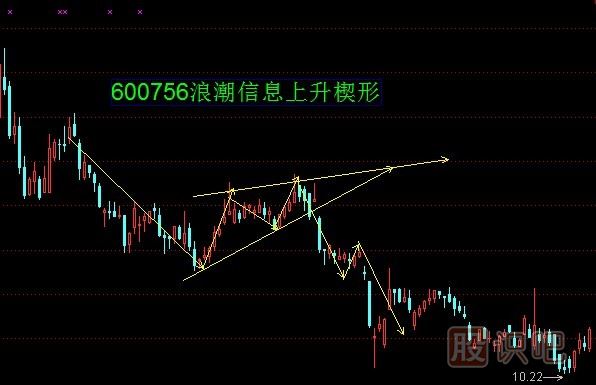 上升楔形是發(fā)生在一個(gè)大跌的趨勢當(dāng)中對之前下跌的一種持續(xù)整理形態(tài),持續(xù)時(shí)間結(jié)束將延續(xù)原來的下底趨勢。表面上看具有一定的迷惑形態(tài)。