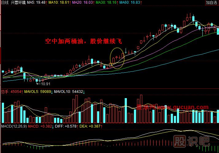 戰(zhàn)機在空中飛行,如果油盡力枯,怎能飛高?軍事上有空中加油的高級技術(shù),那么股票漲不動了,能不能也“空中加油”呢?答案是肯定的,而且空中加油之后,股價會找到新的上升動力,也容易催生短線黑馬。