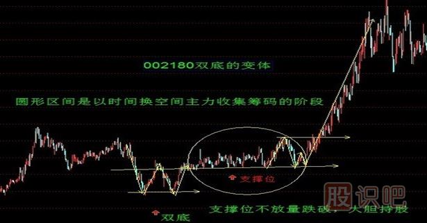 雙頂和雙底技術(shù)圖形如下圖,雙底的例子。它是雙頂?shù)溺R像。成交量在向上突破...