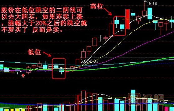 跳空雙連陰是主力利用K線圖的‘跳空雙K線’制造的洗盤陷阱,是一種兇狠而快速的洗盤手法,反技術(shù)操作的手法。