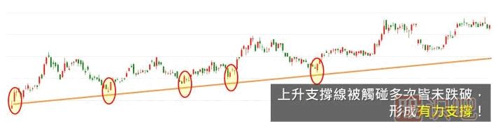 在 K線圖上,將「至少 2波的最低點」相連,