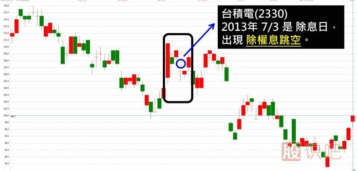 2013年7月3日是除息日,當天就出現(xiàn) 向下跳空,