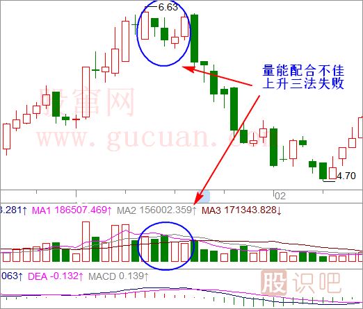2.三根陰線(xiàn)的成交量最好逐漸萎縮,因?yàn)橄碌?a href=http://m.123cyq.com/GPRM/sy/2032.html target=_blank class=infotextkey>放量說(shuō)明拋壓沉重,而縮量回調(diào)說(shuō)明拋盤(pán)較輕,或者是主力在洗盤(pán)。
