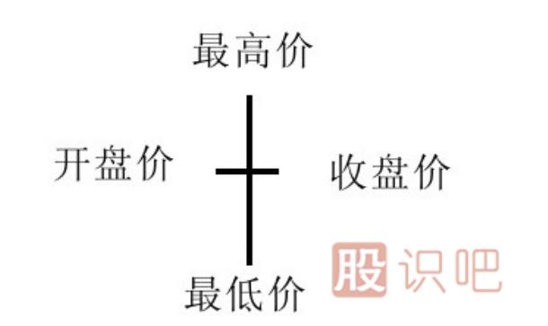 當(dāng)收盤價等于開盤價,我們稱這種情況下收盤的K線為同價線或者十字星。這時,上影線的長度表示最高價與開盤價的價差,上影線的最高點代表價格的最高點,下影線的長度則代表收盤價與最低價之間的差距,下影線的最低點代表價格的最低點,如圖1-3所示。