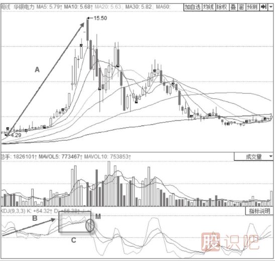 股票技術(shù)分析k線分析試講KDJ指標見頂賣出信號-高位三線向下發(fā)散