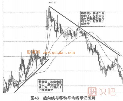 在實戰(zhàn)中,很多投資者對趨向線的應(yīng)用都不夠重視,事實上趨向線的突破對買入、賣出時機(jī)等的選擇具有重要的分析意義,而且即使是市場的造市者往往也會根據(jù)趨勢線的變化采取市場運(yùn)作;因此,巧妙利用移動平均線與K線趨向線的組合,對于投資者而言有很強(qiáng)的實戰(zhàn)意義。