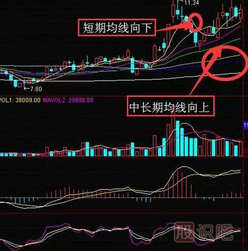 當(dāng)中長(zhǎng)期均線的方向與股價(jià)方向相同的時(shí)候,市場(chǎng)會(huì)出現(xiàn)兩種情況,即均線的多頭排列和空頭排列。無(wú)論上漲時(shí)的多頭排列還是下跌時(shí)的空頭排列,股價(jià)的運(yùn)動(dòng)方向?qū)⑴c均線運(yùn)行的方向一致,趨勢(shì)的意義就在于此。當(dāng)股價(jià)處于上升趨勢(shì)中,均線運(yùn)行方向向上,在股價(jià)下面托著股價(jià)向上運(yùn)行,此時(shí)如果出現(xiàn)股價(jià)回調(diào)的話,則向下的股價(jià)方向與向上的均線方向相反,此時(shí),當(dāng)回調(diào)到位后股價(jià)自然在均線的推動(dòng)下重新向上。